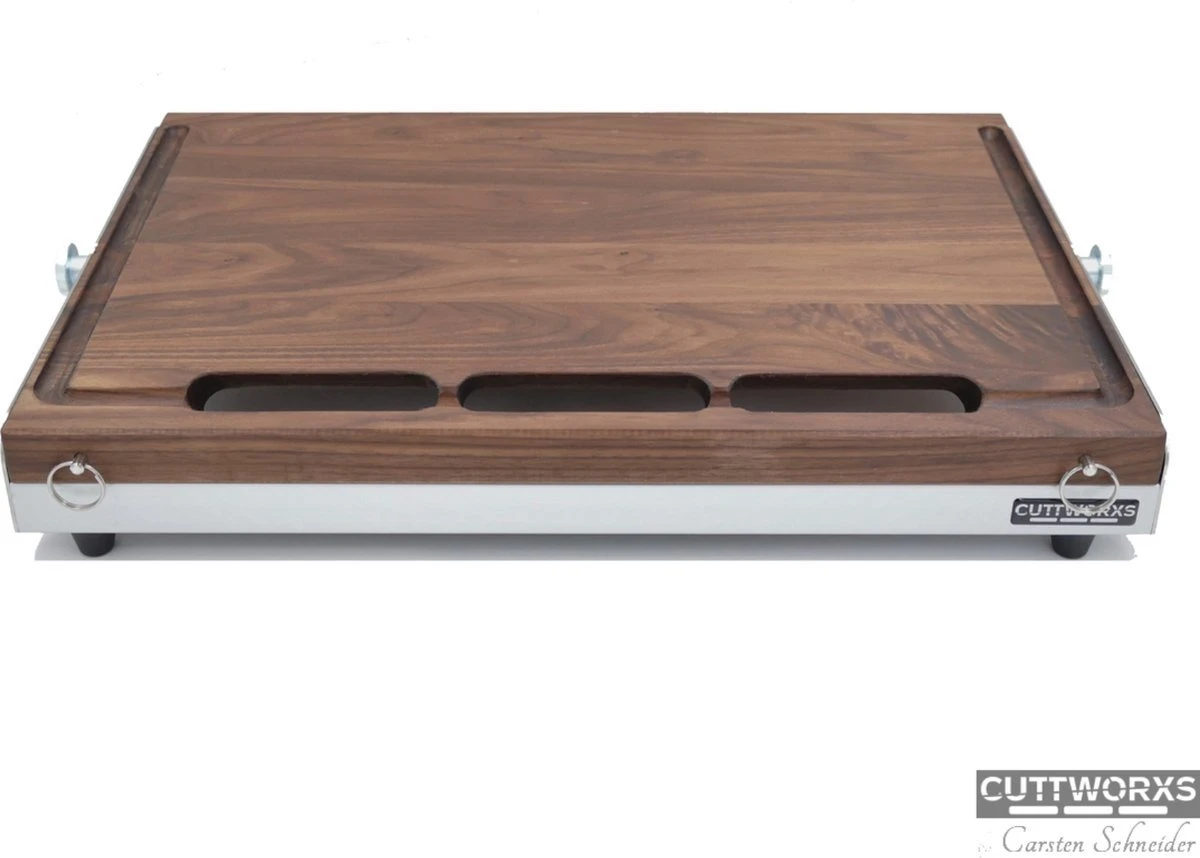Het is een snijplank, werkplaats en werkplek in één. Het bovenblad is vervaardigd van hoogwaardig van fijn notenhout. En is een absolute “must have” voor veeleisende gebruikers die een functionele en schone werkplek wensen voor het bereiden van gerechten. Bijna geen enkele ander keukenaccessoire is zo stijlvol als de Big Cuttworxs Infinity Snijplank met de geïntegreerde gastronorm opvangbak.