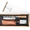 Het handvat is gemaakt van omgebogen roestvrij staal. Ondanks de grove afwerking en het ruige uiterlijk is het mes vlijmscherp en ligt het voortreffelijk in de hand.