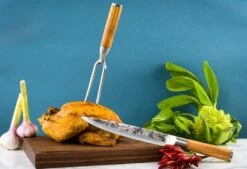 De vleesvork heeft een lemmetlengte van 20cm met twee scherpe punten en een handvat van 11 cm. Het handvat is gemaakt van smaakvol olijfhout.