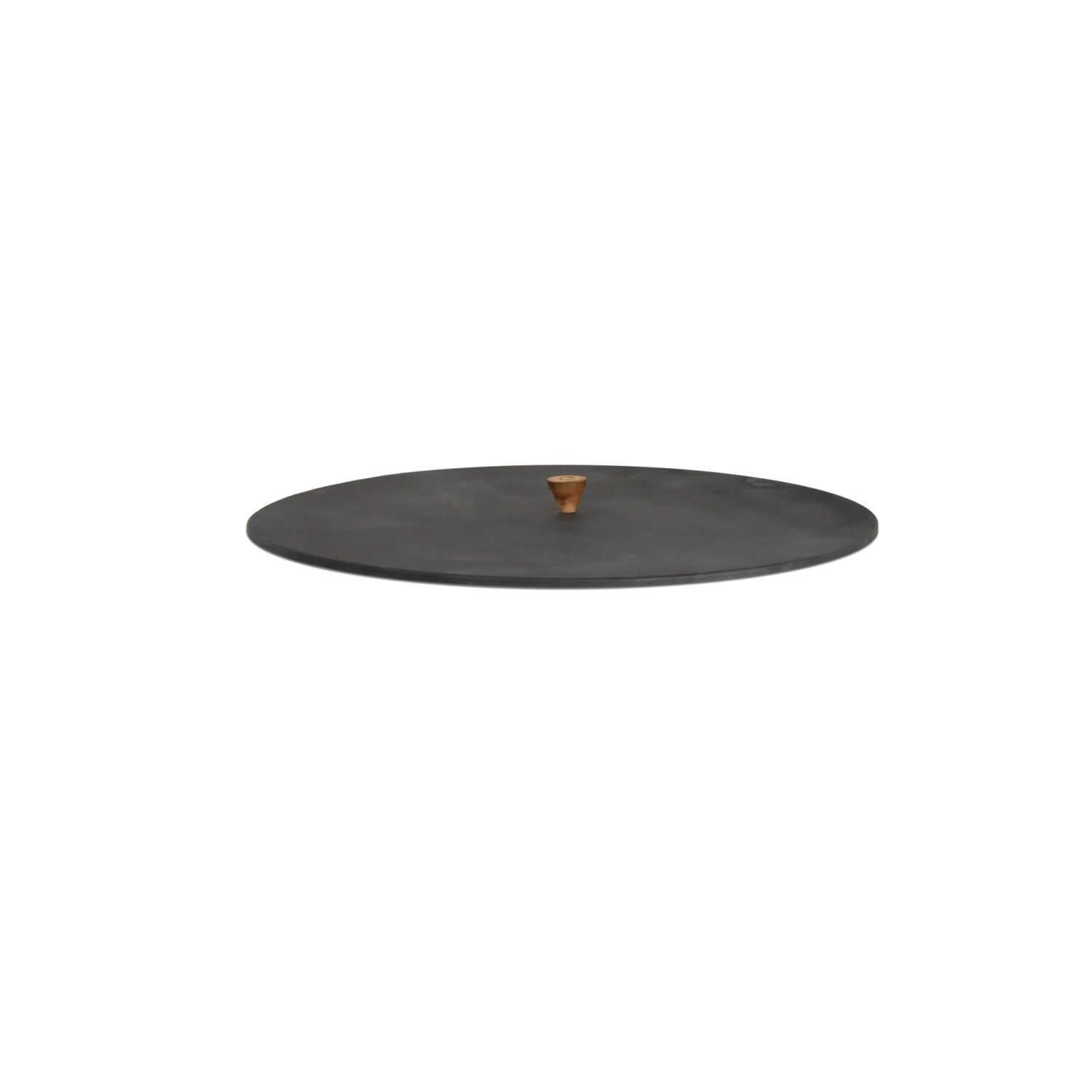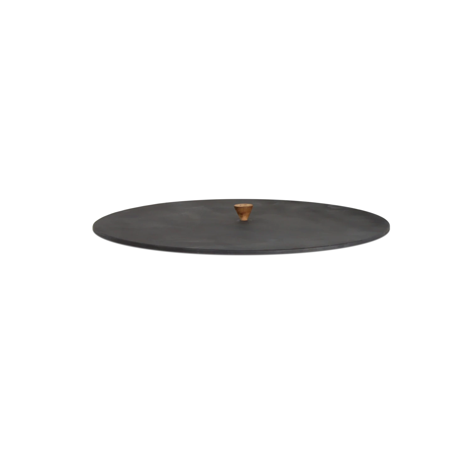 Gemaakt van zwart gecoat staal en voorzien van een mahoniehouten knop. De OFYR Cover 85 (Ø85 cm) en Cover 100 (Ø100 cm) passen over de vuurschaal en plaat om uw OFYR af te dekken wanneer deze niet in gebruik is.