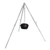 De 12 millimeter dikke bakplaat heeft een diameter van 100 cm. Via het houtvuur in de vuurschaal (kolen kan ook maar is minder leuk omdat het niet vlamt) wordt de plaat tot circa 300˚C opgewarmd. Smeer de plaat in met olie en bakken maar. Het kookoppervlak is zeer groot: op de plaat met een diameter van 100 cm kan probleemloos voor 50 man gekookt worden.