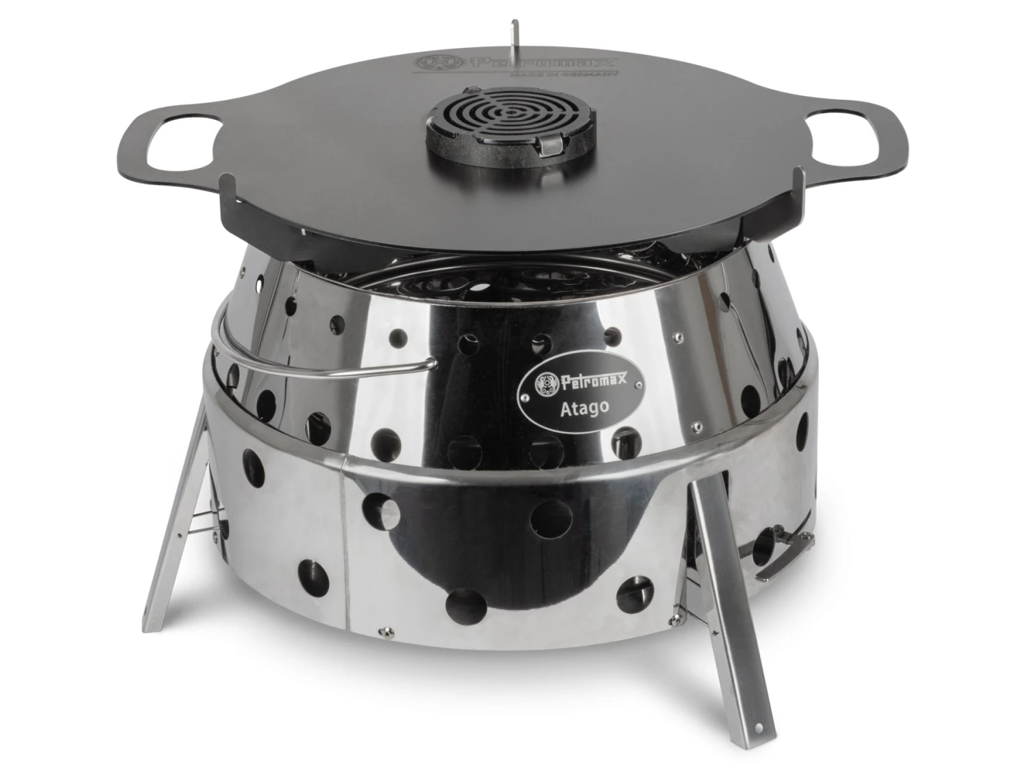 De Atago Grillplaat is het verlengstuk voor de allrounder, de Petromax Atago. Met de plaat gemaakt van 3 mm dik geolied staal, kunnen hartige vleesspecialiteiten dankzij verschillende temperatuurzones en gelijkmatige warmteverdeling uiterst nauwkeurig worden gegrild. Tegelijkertijd kunnen visfilets of hartige gegrilde groenten aan de buitenrand worden bereid in een temperatuurzone met een lagere temperatuur. Na elk gebruik van de grillplaat zal de patina verbeteren. Door het natuurlijke anti-aanbakeffect van deze patina, hoeft weinig vet worden toegevoegd tijdens gebruik.