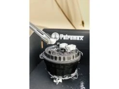 Een trivet is een metalen rooster of onderzetter die onder de Dutch oven wordt geplaatst om hem van direct contact met de hittebron, zoals kolen of open vuur, te isoleren. Ook kun jij met een trivet tijdens het koken de hete deksel of pan veilig en schoon wegleggen