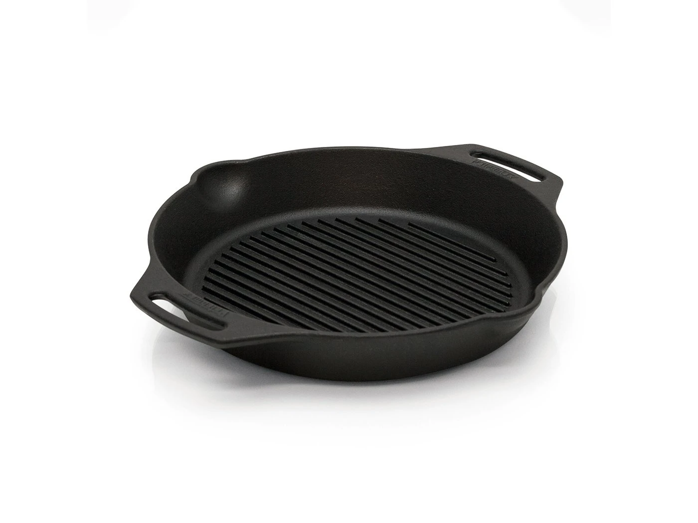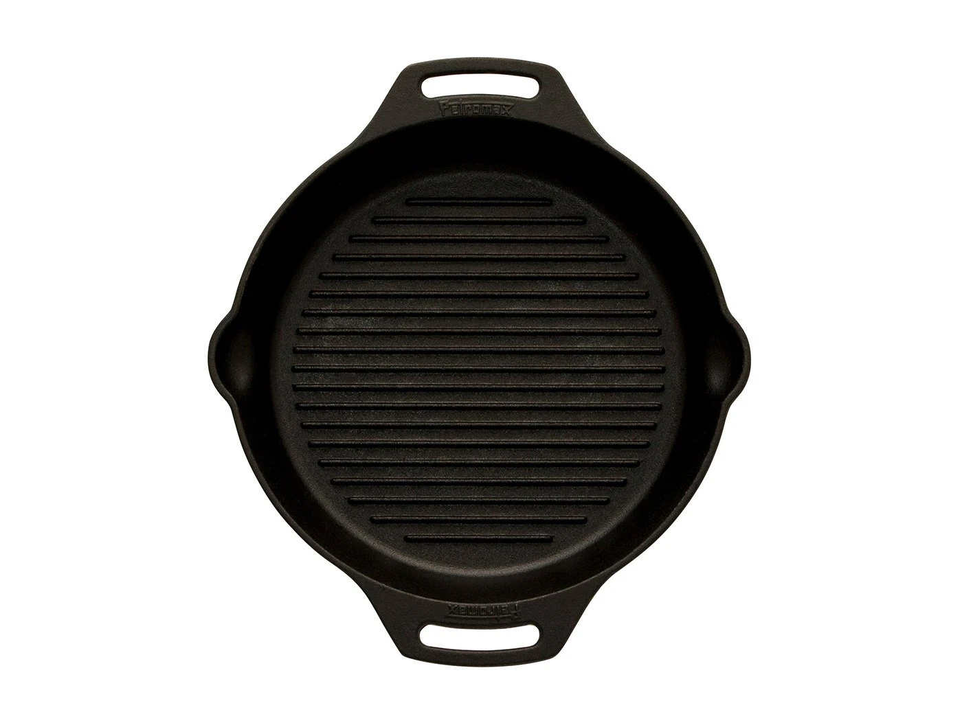 Een Gietijzeren Petromax Grill Skillet is een handig en enorm multifunctionele pan om vlees, vis en groenten te bakken. Een grill skillet heeft meestal ribbels op de bodem, waardoor er grillstrepen op het voedsel ontstaan en het overtollige vet wegloopt. Of je nou een hobbykok of professional bent, deze pan wil je niet missen. Gebruik hem direct in een kampvuur, op een Atago, Rocket Stove of gewoon binnen op het fornuis. Deze Skillet is voorzien van twee handvatten waardoor je hem gemakkelijk in de oven, op het fornuis of in een kamado kan zetten.