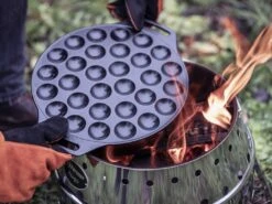 Petromax Gietijzeren Poffertjes Pan. Voor de smaak van avontuur, in hapklare porties. Met deze Poffertjespan maak je heerlijke toetjes tijdens jouw buitenkook avontuur. Door de capaciteit van 30 poffertjes en de korte bereidingstijd kan je op de poffertjespan perfect poffertjes bakken voor een hele groep. Het maken van poffertjes is een leuke activiteit om samen met vrienden of familie te doen en het resultaat is heerlijk om te eten! Naast poffertjes kan je met deze pan experimenteren met andere leuke kleine hapjes en amuses. Bijvoorbeeld kleine gehakballetjes, mini eitjes of wat je maar kan bedenken. De Petromax Poffertjespan is makkelijk te gebruiken door de twee handvatten aan de zijkant. Tevens is hij van gemaakt van Gietijzer en hierdoor te gebruiken op open vuur, boven een driepoot of zelfs boven een Petromax Atago. Als kers op de taart is de onderkant van de pan afgevlakt waardoor hij zelfs te gebruiken is op vrijwel elk fornuis.