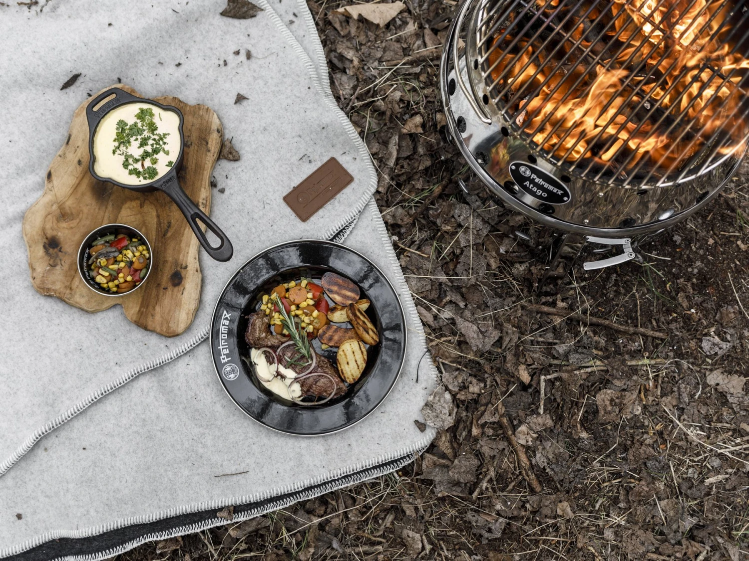 Een Skillet met vlakke bodem maak je gemakkelijk schoon met de Petromax schraper of Petromax scrub mat.